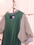 素敵なグリーンのコットンにグレーのストライプを合わせました。