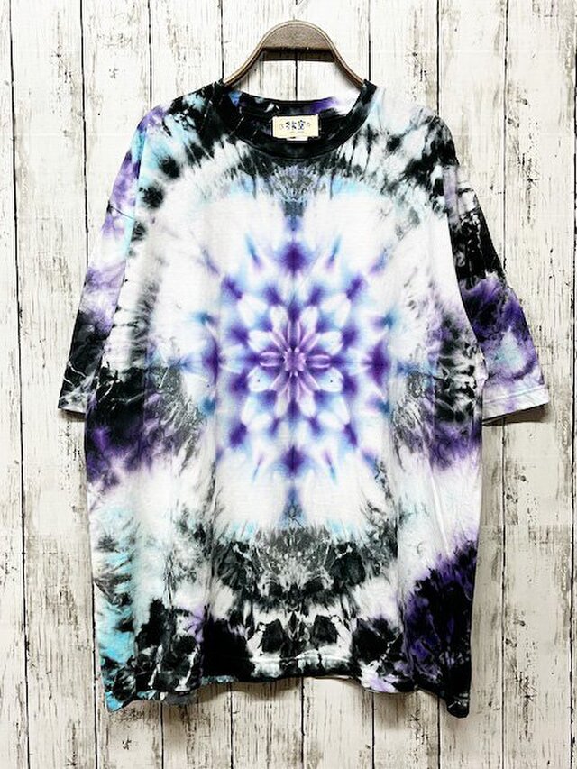 タイダイ染め ビッグシルエット Tシャツ XLサイズ 曼荼羅 ブラック×ブルー×パープル Hippies Dye HD16-69
