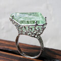 原石ならではの形状と淡いグリーンの色彩を、透かし模様の台座にセッティングしました。