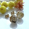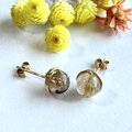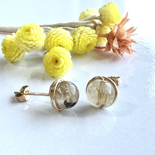 太陽放射ルチル クォーツ 1粒ピアス 14kgf