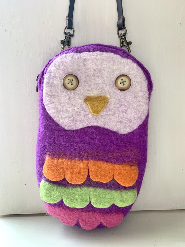 カラフルな動物ポーチ(フクロウ✖️ラベンダー)