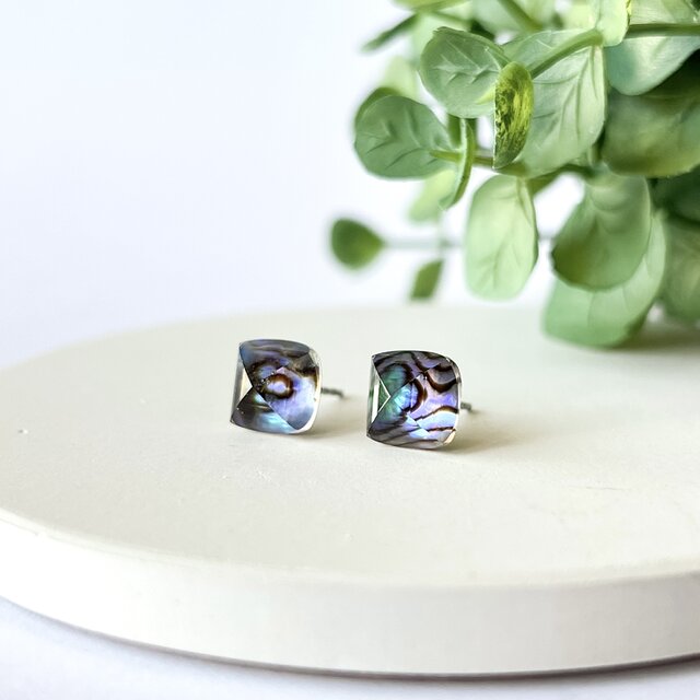 アバロンシェル×クリスタル シュガーローフカットのスタッドピアス
