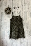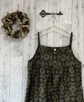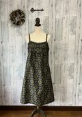 ☆大島紬 菱紋に山吹色の花柄ヨーク切り替えギャザーキャミOP 着物リメイク♪