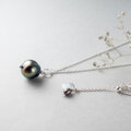 チェーンの先には甘すぎないハートモチーフのチャームと、黒蝶真珠に合わせた濃いグレーの淡水パールを合わせています。