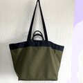 最強ナイロン、コーデュラ1000カーキグリーンで作った特大ファスナートートです。