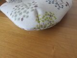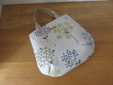 ナチュラルな花柄の綿麻生地でおにぎりのようなミニトートバッグを作りました。