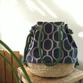 マダガスカル産ラフィアとスペインコマーソンのファブリックを使った大人の巾着鞄