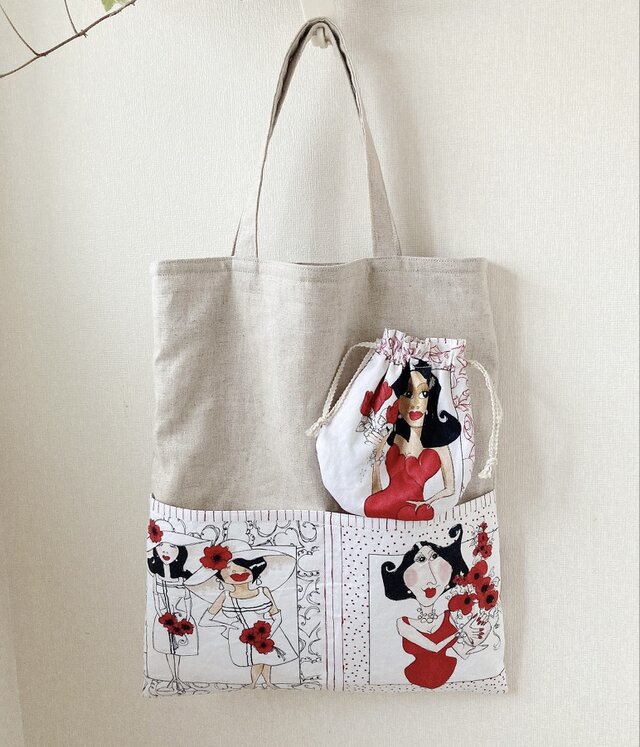 タテ約38cm×ヨコ約32cm ・巾着は縦14.5×横14cm