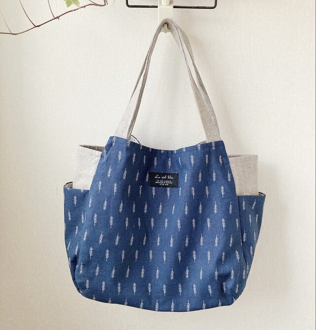 素材はコットン、無地部分はリネン生地です。内側の生地はコットンです。