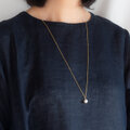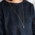 ロングのネックレスはシンプルな装いのポイントにとても重宝します。