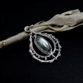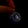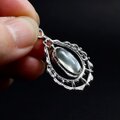 透明感のある美しいグリーンムーンストーンをドロップレースデザインのペンダントに仕上げました。