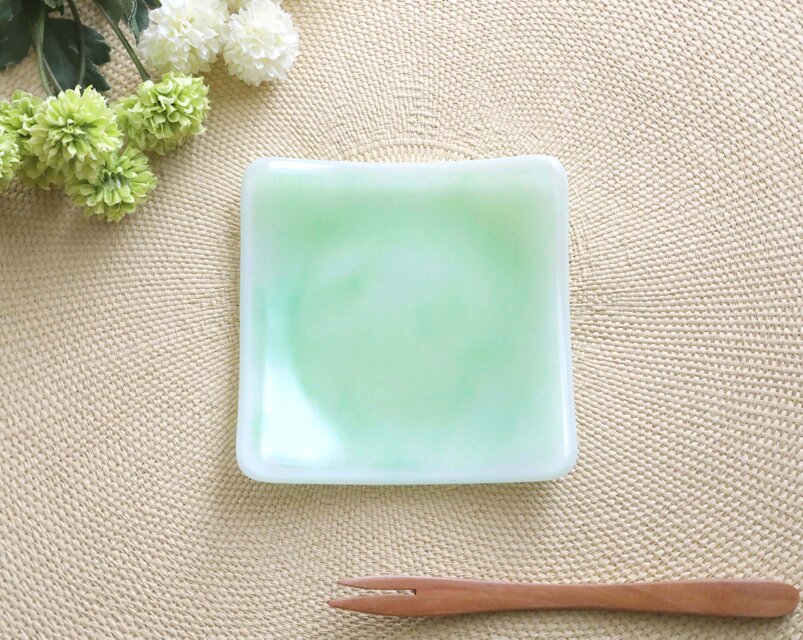 こちらの小皿はそんなフュージングの技法を使って焼き上げました。