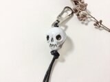 革紐をあごから頭まで通してキーホルダーパーツを付けました。