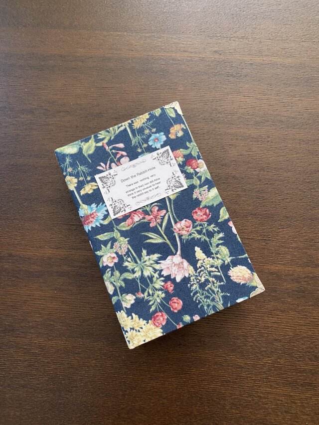 紺地にお花がたくさん描かれている生地を使用して製作したブック型のフリーケースを作りました。