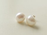 ころんと一粒、バロック淡水パールのピアスです。