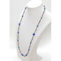 美しいブルーのラピスラズリのロングネックレスです。照りの美しい本真珠(淡水)も使っています。