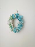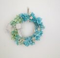 紫陽花をブルーとオリーブグリーンに染め、カスミソウをいれ、さわやかなリースに仕上げました。