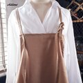 胸のリボンを調節することができるのでエプロンの位置は自由自在。