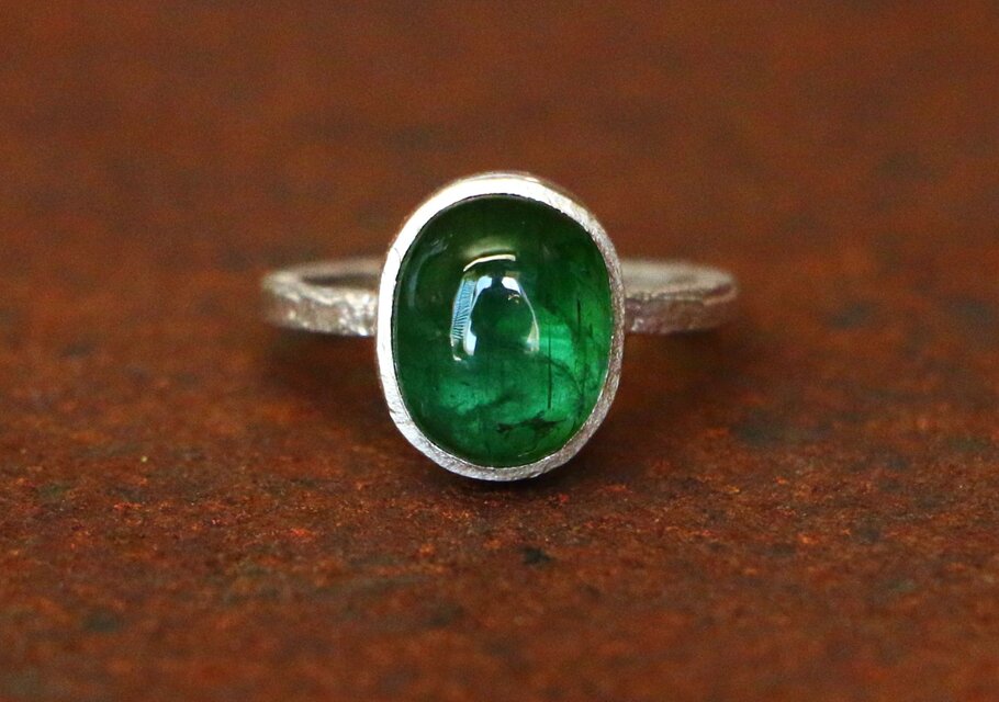 素材…トップは天然グリーントルマリン バンド…スターリングシルバー925 手作り