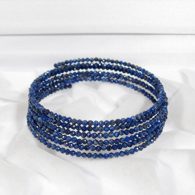 美しいブルーのラピスラズリの6連ブレスレットです。形状記憶ワイヤーを使ったフリーサイズ(最小で内周15.5cm)のブレスレットです。