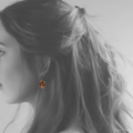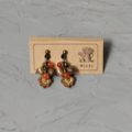 愛らしいオレンジのお花のビーズと、飴色の丸いビーズが揺れる、レトロな雰囲気が魅力のイヤリングです。耳元でビーズが優しく揺れるたびに、光を浴びてきらめき、顔周りを華やかに彩ります。大人の女性の可愛らしさと上品さを引き立てます。