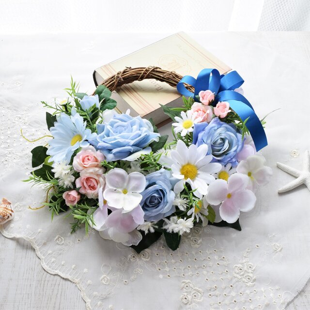 夏らしい爽やかな印象のリースなので、お誕生日・新築祝い等のプレゼントにも喜ばれると思います。