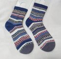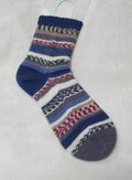 半端に余った糸を組み合わせて編んでいるので、世界に一足だけの靴下です。