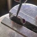 しずく型の石を横向きにセッティング、ミル打ちで石留め