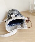 汚れや擦れの多い底部分と巾着部分は丈夫な無地のリネン生地を使用しました。