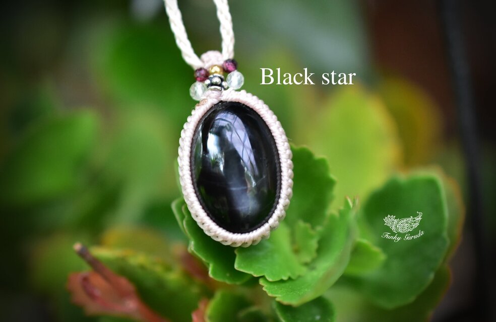 十字スター★ブラックスター マクラメペンダント469
