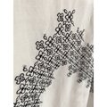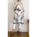 オフ白コットンローン生地に花模様を幾何学的にステッチ刺繍を施した、個性的なチュニックワンピースです。