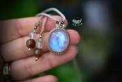 透明感とブルー★高品質★レインボームーンストーン マクラメペンダント470