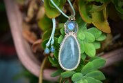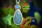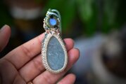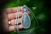 月と水★レインボームーンストーン アクアマリン マクラメペンダント475