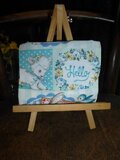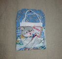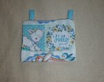 ブルー地の童話の絵本のような動物柄のコットンブロード地の移動ポケットです