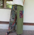 グリーンの無地(古布ではありません)と組み合わせてオシャレなパンツです。綿100%