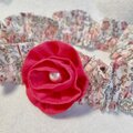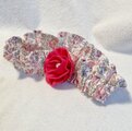 *淡いピンク色のリバティ・フェリシテと、鮮やかなコーラルピンクのリネンを使用したベビーヘアバンドです。
