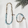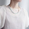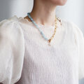 当作品はゴロっとした質感のアクアマリンを、ラブラドライトを挟みながら繋ぎ、