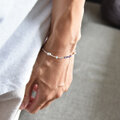 キラキラと輝くシルバービーズの中に、小さなストーンを散りばめたスッキリブレスレット。