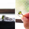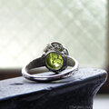 鮮やかなグリーンのカボションを、透かし模様の台座にセットしました。