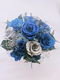 青い薔薇とシルバーローズのプリザーブドフラワーアレンジです。