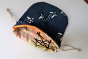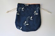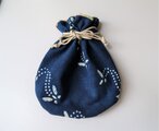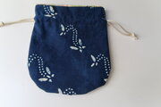 正絹の羽織裏を中布にした、ろうけつ染めの きんちゃく袋です。