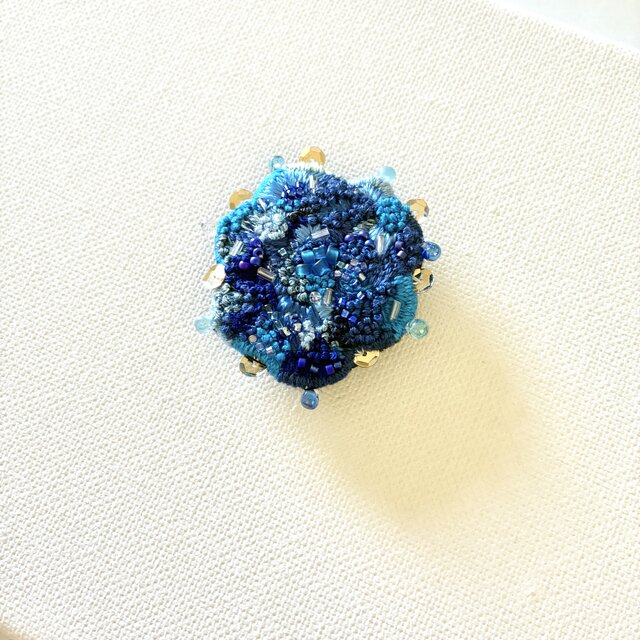 "Summer Blue "夏のブルーを楽しむ 刺繍ブローチ