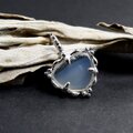 一見するとホワイトアゲートですが、光にかざすと眩いばかりの虹が浮かび上がるイリスアゲート(アイリスアゲート)を粒飾りのペンダントに仕上げました。