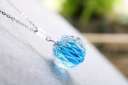 バーナーワークの技法で制作した、菱形格子模様のとんぼ玉ペンダントです。