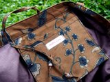 コットンのブラウン系の花鳥柄が、落ち着いた雰囲気で、どんなスタイルにも合わせやすいと思います。