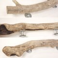 流木と金具との間はシリコンシーラントを挿入し補強、木材保護のため ウレタンニス を塗布しています。