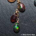 ワイヤーの先に、カイヤナイト、ペリドット、インペリアルトパーズ、ブラックオパールを3個下げました。