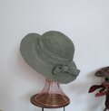 クラウン部分にスタークロッシェの模様入りで個性を出して、バッグに同じ模様で編んだ、リボンを付けてみました。