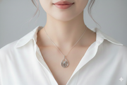 美しい透かし模様のデザインは女性らしく、コーディネートしやすいネックレスです。