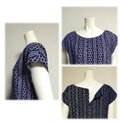 やや淡い青系の菱柄柄の浴衣を右脇に配した、爽やかな夏らしいワンピースです。
